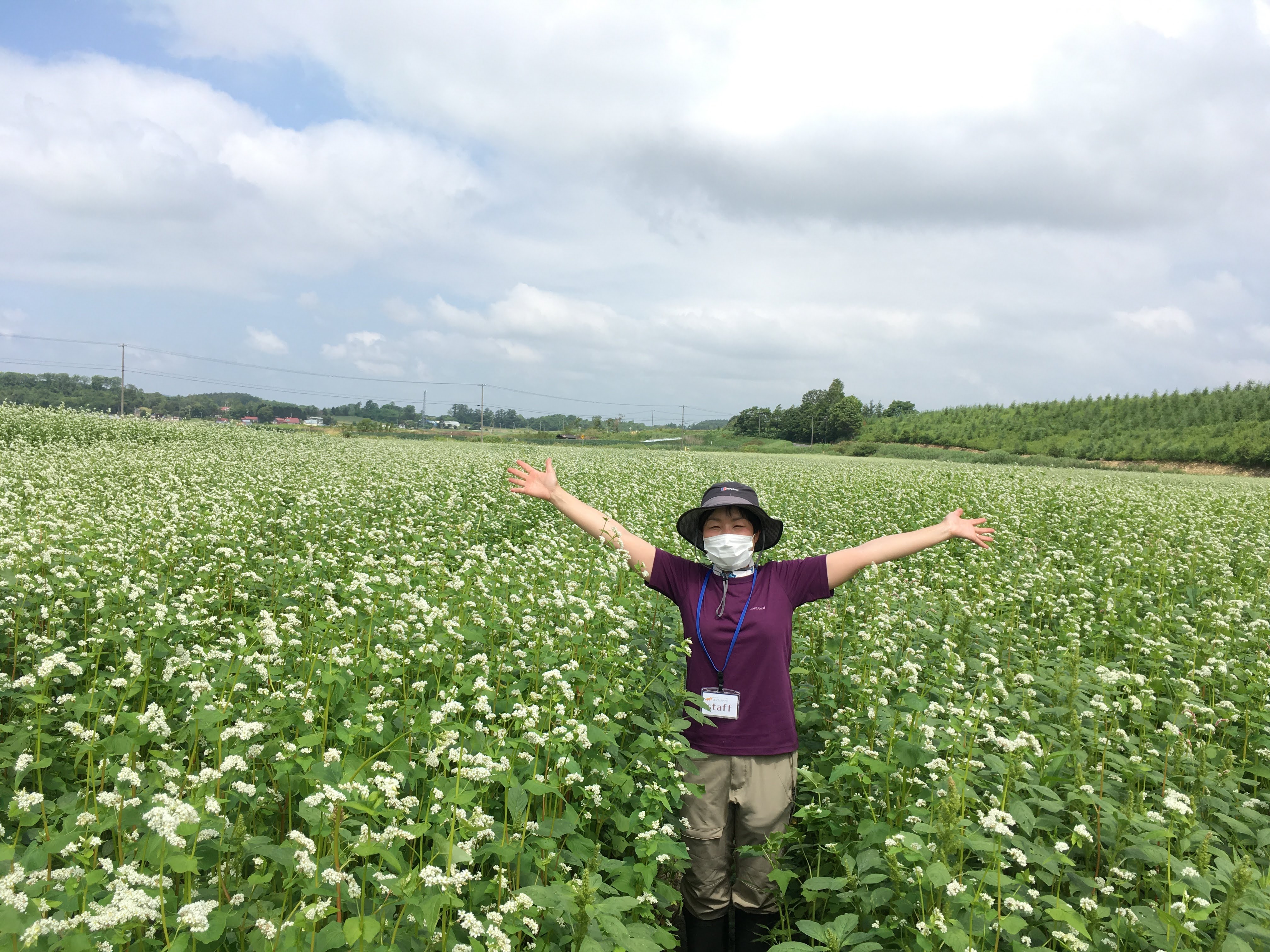 目の前にもそば畑が広がっていますし、遠くの景色を眺めても他の農作物と一緒にそば畑の風景が目に入ってきます。